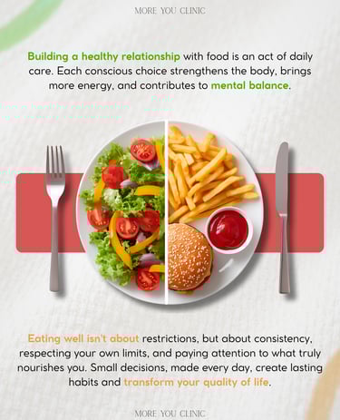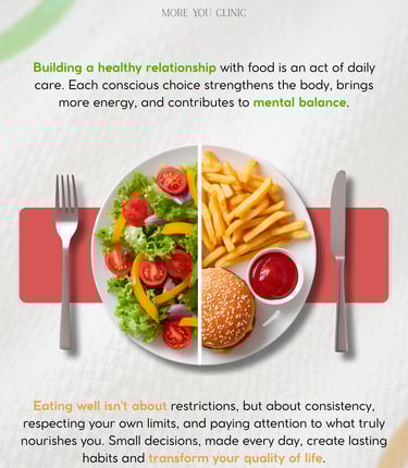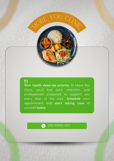 Diante do grande volume de informações confusas sobre nutrição na internet, estas peças foram desenvolvidas para estabelecer a autoridade e a confiabilidade da clínica nas redes sociais. O propósito foi criar um conteúdo que, além de educar, estabelece uma conexão direta com o público. A produção demonstra como o design atua como facilitador da saúde: ao organizar dados importantes em layouts limpos e atraentes, as barreiras entre o conhecimento técnico e a rotina do paciente são reduzidas.