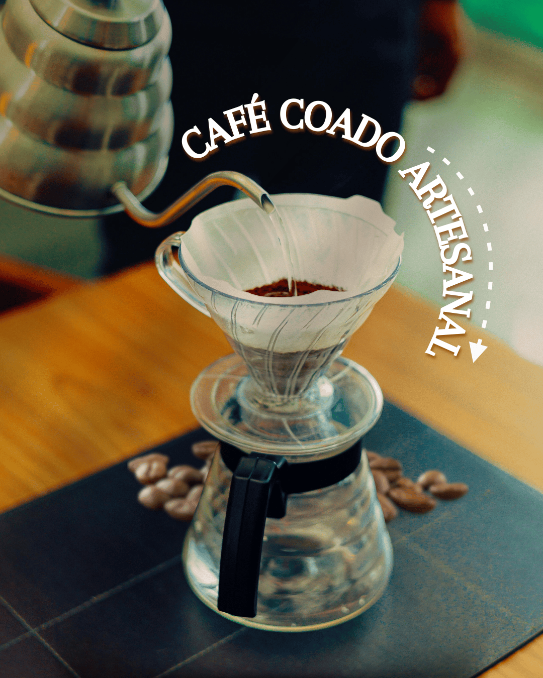 A Brittany foi o elemento escolhido para trazer calor e proximidade ao projeto. Com seu traço fluido e manual, ela funciona como uma assinatura pessoal, remetendo ao cuidado artesanal do preparo do café. Ela quebra a rigidez do layout e adiciona uma camada de elegância e acolhimento, como se o convite fosse escrito à mão para o cliente.