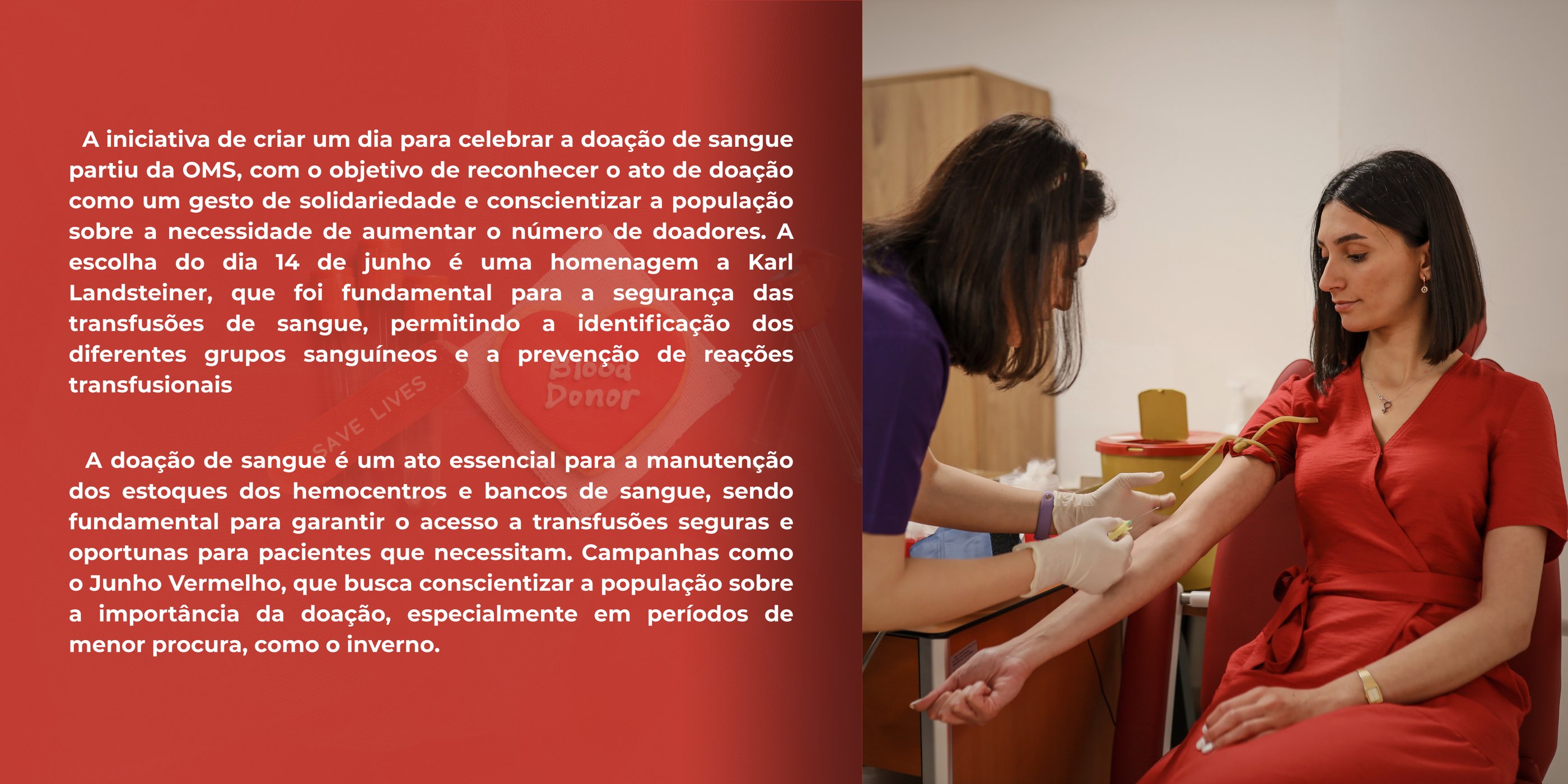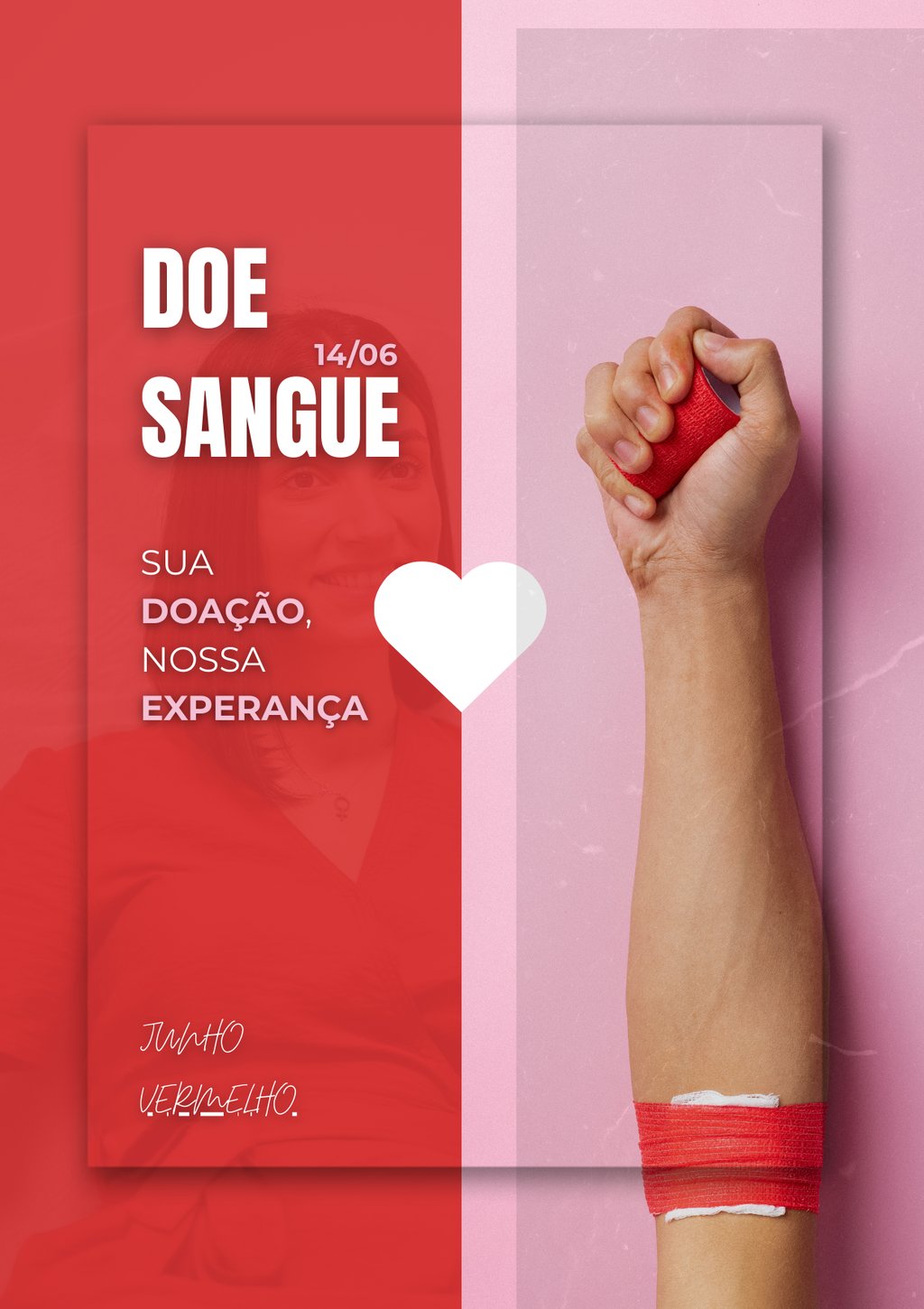 Essa peça foi produzida para fortalecer a divulgação da campanha de doação de sangue, destacando a importância desse gesto solidário para salvar vidas. A intenção foi criar uma comunicação que fosse além da estética, atuando como ferramenta de mobilização social, despertando empatia, senso de urgência e incentivo à ação por meio de uma linguagem visual humanizada e impactante.