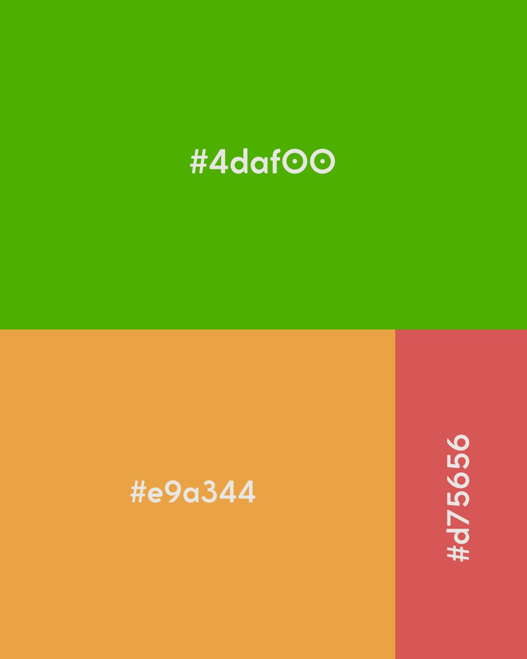 #D75656: Utilizada para trazer força e destaque. É uma cor pulsante que simboliza a paixão pela nutrição e o dinamismo, sendo estratégica para enfatizar alertas importantes ou chamadas de ação que exigem uma resposta imediata do público.