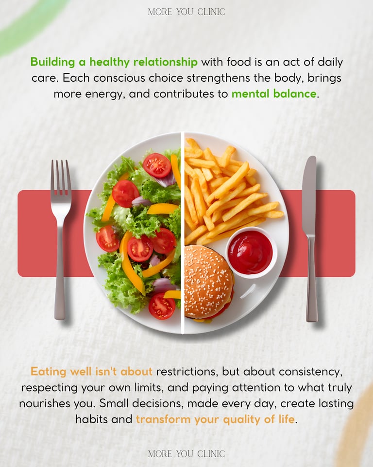 Diante do grande volume de informações confusas sobre nutrição na internet, estas peças foram desenvolvidas para estabelecer a autoridade e a confiabilidade da clínica nas redes sociais. O propósito foi criar um conteúdo que, além de educar, estabelece uma conexão direta com o público. A produção demonstra como o design atua como facilitador da saúde: ao organizar dados importantes em layouts limpos e atraentes, as barreiras entre o conhecimento técnico e a rotina do paciente são reduzidas.