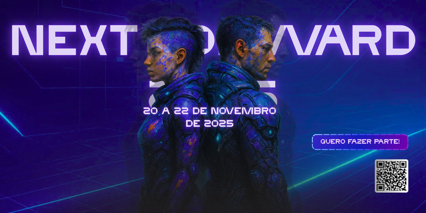 A escolha das cores foi pensada para construir uma atmosfera futurista, tecnológica e impactante, combinando tons vibrantes com uma base escura para gerar contraste e profundidade visual. Essa paleta reforça a ideia de inovação e movimento, além de favorecer a hierarquia da informação e o destaque dos elementos principais, tornando a comunicação mais envolvente e alinhada ao conceito do evento.