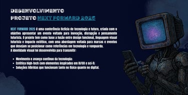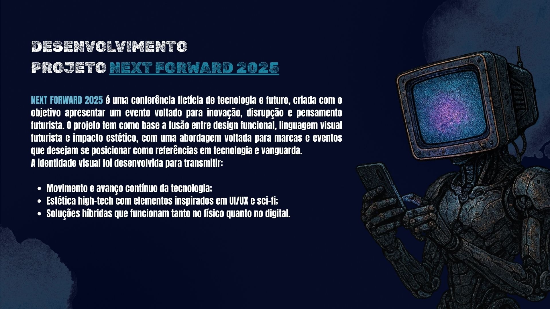 A tipografia foi escolhida para reforçar o conceito futurista do evento, priorizando uma estética tecnológica, robusta e contemporânea. A fonte utilizada contribui diretamente para a construção da identidade visual das peças, transmitindo inovação, força e dinamismo, ao mesmo tempo em que garante boa leitura em diferentes formatos e mídias digitais.