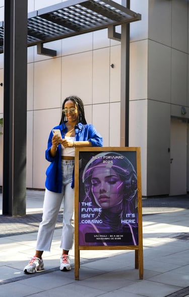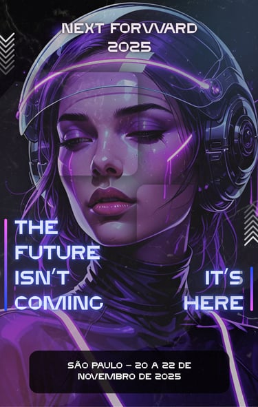 Criação de peças para redes sociais e divulgação digital de um evento futurista, com foco em tecnologia, inovação e experiência imersiva. O visual explora elementos sci-fi, paleta neon e composições dinâmicas, buscando traduzir visualmente a ideia de avanço, ruptura e transformação, alinhando estética e conceito de futuro.